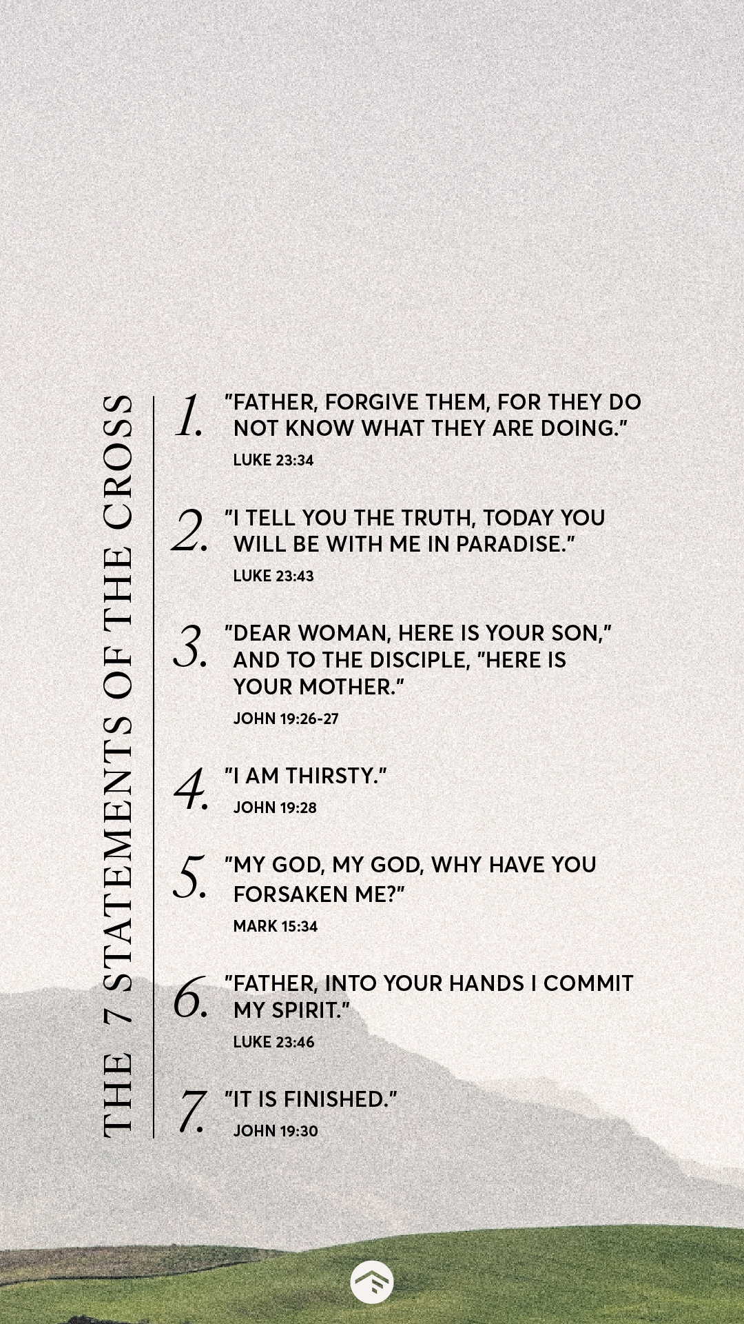 The seven statements that Jesus spoke on the cross over 2,000 years ago may seem irrelevant to your life today, but these statements show us God's love and give us peace in the middle of anxiety. Download this phone wallpaper now!